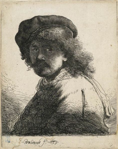 | Self Portrait in a Cap and Scarf with the Face Dark: Bust. | |