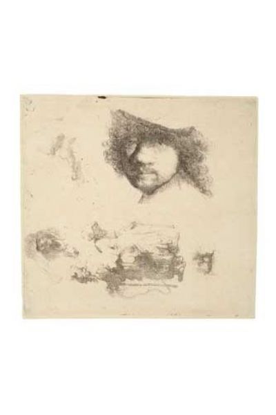 Sheet of Studies: Head of the Artist, A Beggar Couple