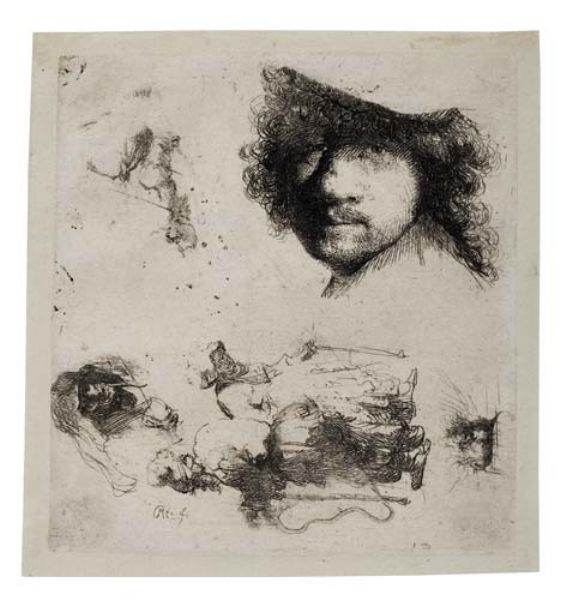 | Sheet of Studies: Head of the Artist, A Beggar Couple | |
