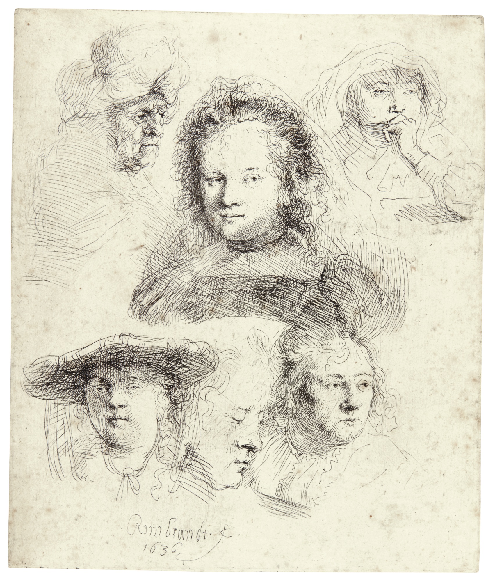 | STUDIES OF THE HEAD OF SASKIA AND OTHERS (B., HOLL. 365; NEW HOLL. 157; H. 145) | |