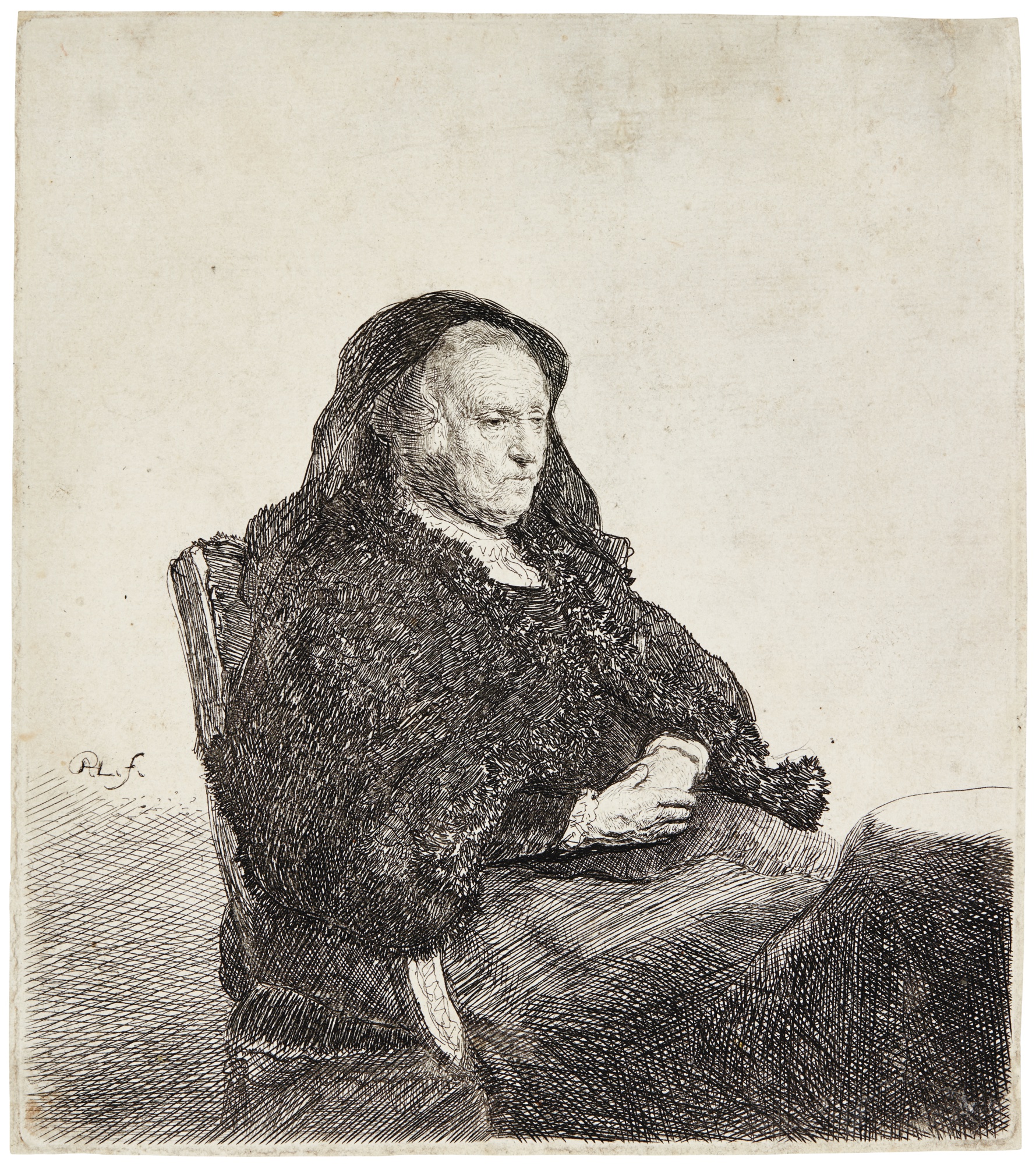 | THE ARTIST'S MOTHER SEATED AT A TABLE, LOOKING RIGHT: THREE QUARTER LENGTH (B., HOLL. 343; NEW HOLL. 91; H. 52) | |