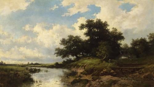 FIGURES ON A RIVER BANK