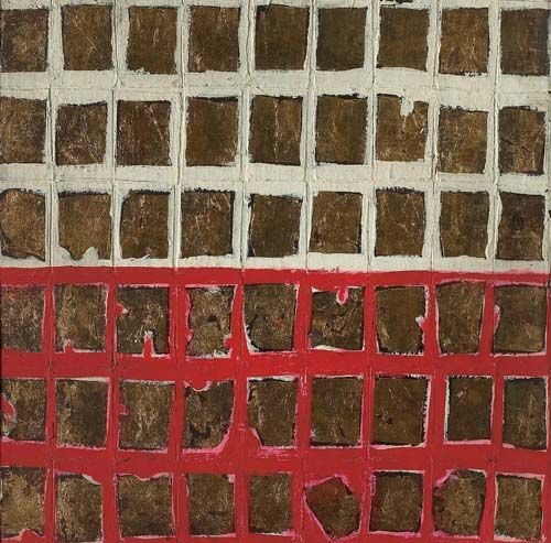 Enamel and leaf gold on board