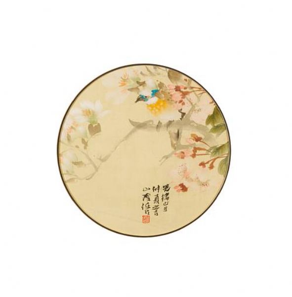 Ink Ink and colour on silk, circular fan leaf, framed and glazed