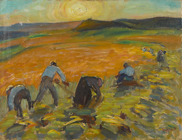 Moisson au soleil couchant