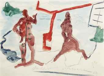 Pencil graphite and watercolour on paper
