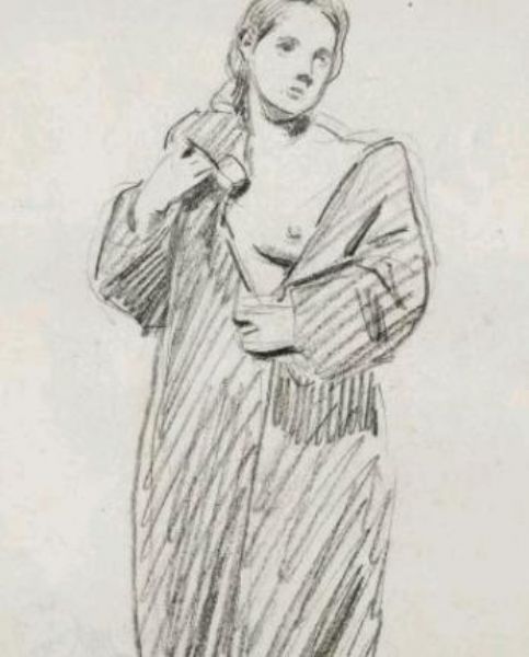 Etude de femme au manteau découvrant son sein