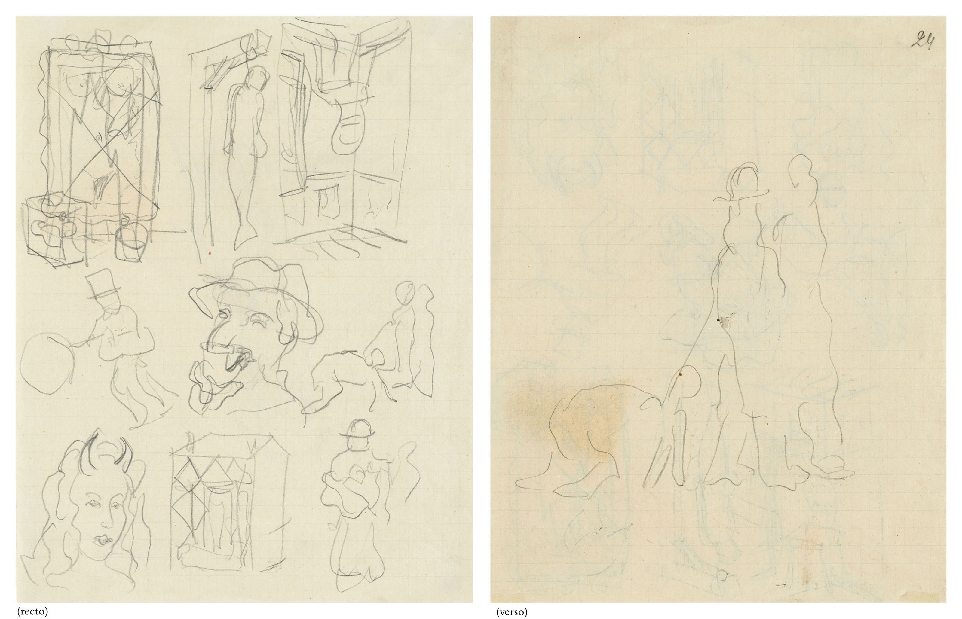 | Esquises pour 'Les Nécessités de la vie et les Conséquences des rêves précédés d'Exemples' (recto); Croquis (verso) | |