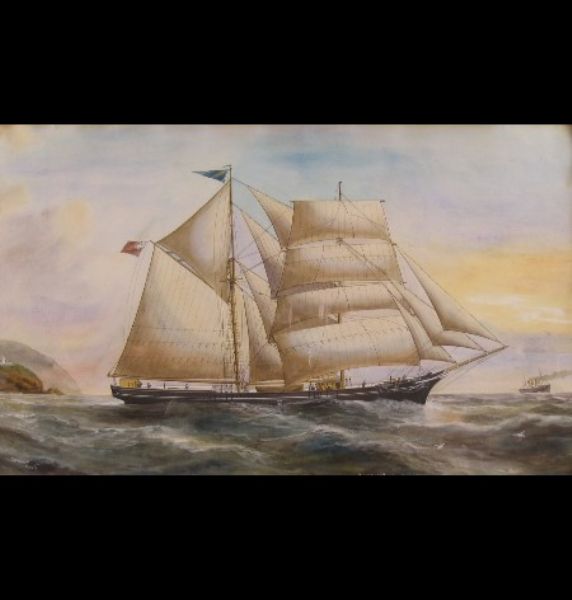 Aneroid of Newcastle, in full sail off the coast,