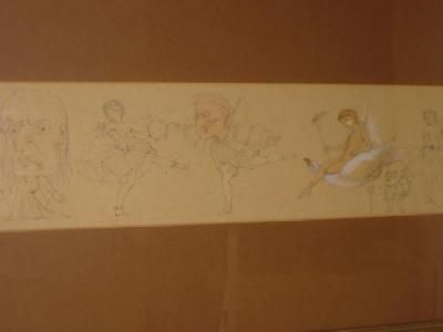 A Satirical Figure Scene depicting a pair of ballet dancers, three men and a cherub riding a bird