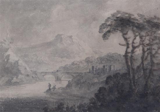 Mountainous river scene with bridge