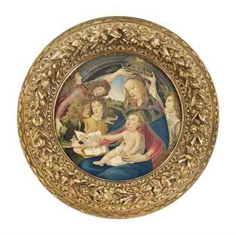 | Watercolor heightened with gold, tondo, in a carved and gilded frame | |