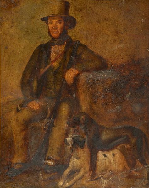 Portrait of a huntsman with dogs