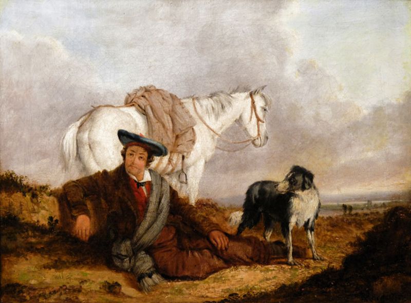 A GHILLIE RESTING WITH HIS DOG AND PONY