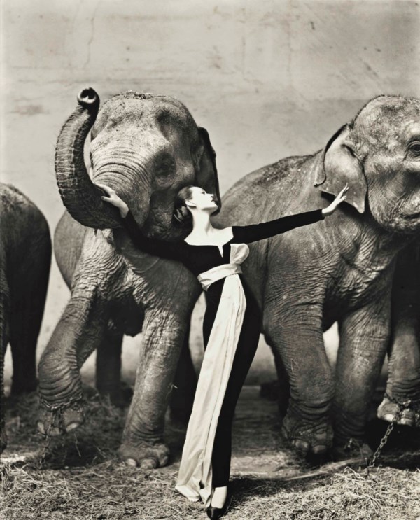 | Dovima with Elephants, Evening Dress by Dior, Cirque d'Hiver, Paris | |