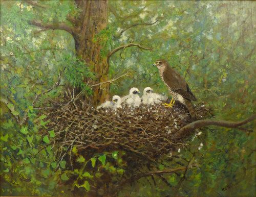 SPARROWHAWK, IN A NEST WITH CHICKS