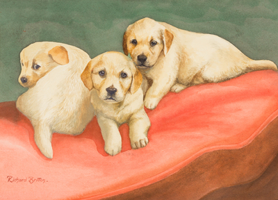 Labrador Puppies on a Cushion