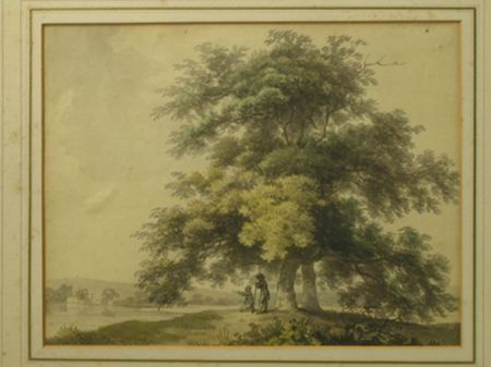 A LANDSCAPE WITH FIGURES BENEATH A TREE