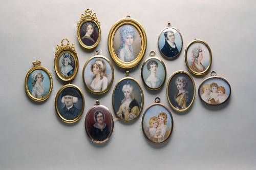 | A miniature portrait of a young lady in a white dress with a white ribbon in her hair and wearing a pearl necklace | |