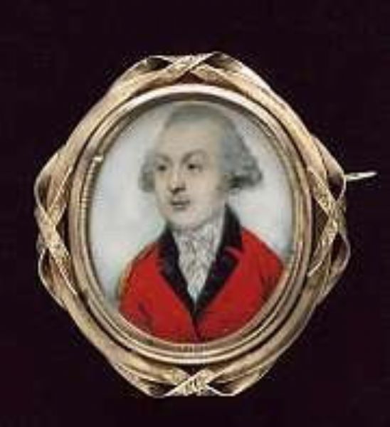 An Officer, wearing scarlet coat with black facings and gold epaulette, tied white cravat