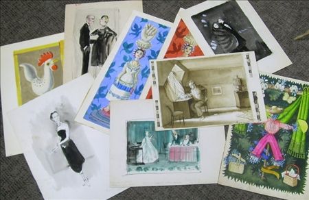 | Lot of Nine Works on Paper of Society Figures and Still Lifes ...Edith Sitwell, The Duchess of Windsor, Cyril Connolly at Work | |