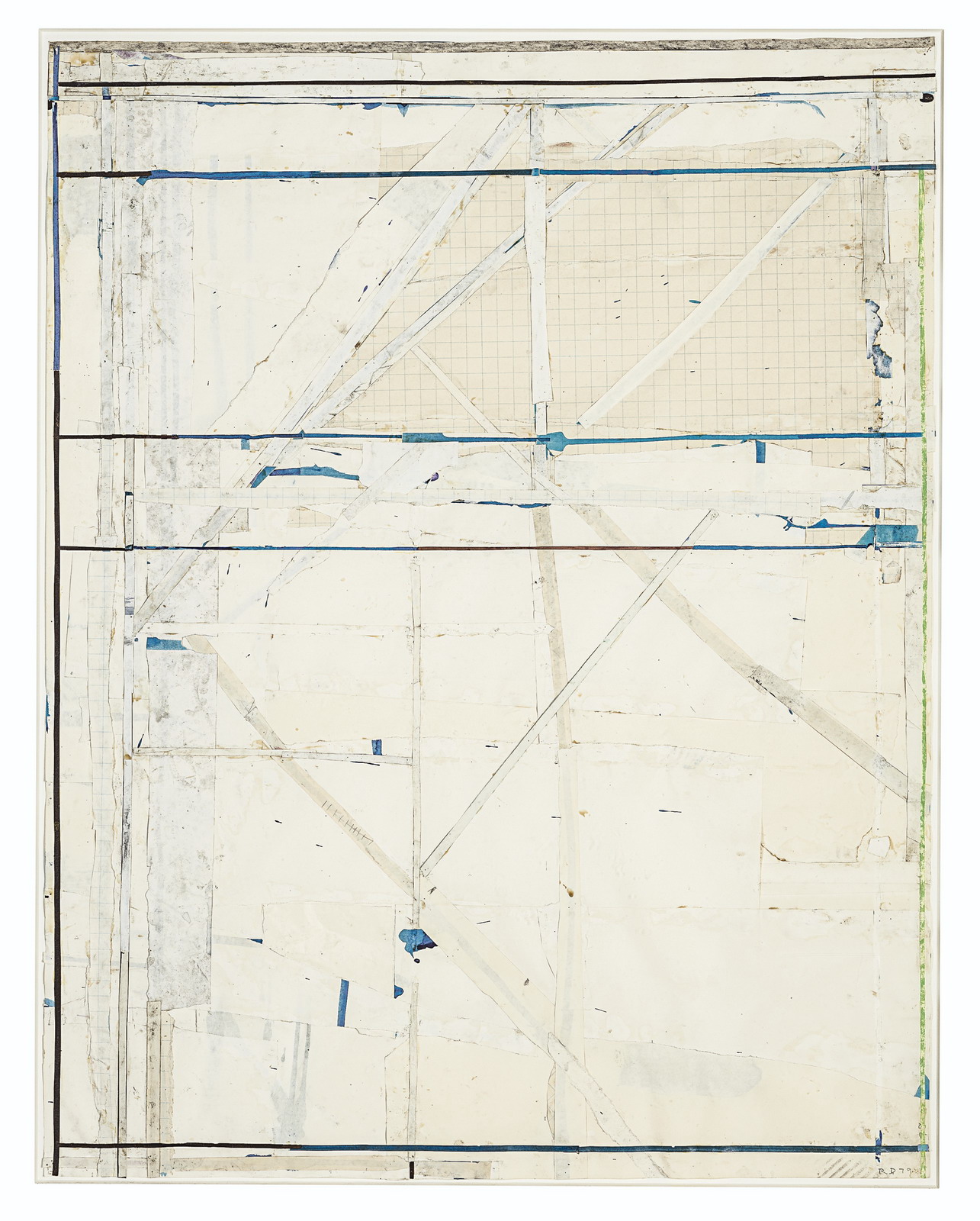 | Gouache wax crayon, graphite, paper and printed paper collage on paper | |