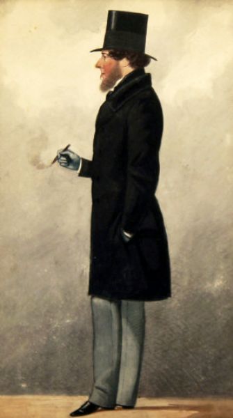 Portrait of a gentleman wearing a top hat and smoking a cigar