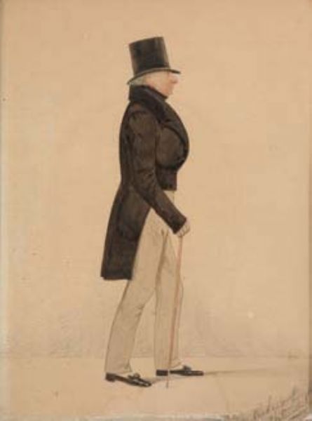 | Silhouette portraits of a gentleman, each full-length standing, wearing a top hat and holding a cane two | |
