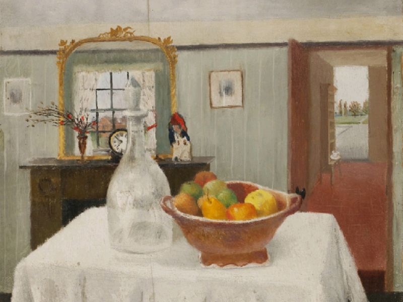 An interior with a bowl of fruit