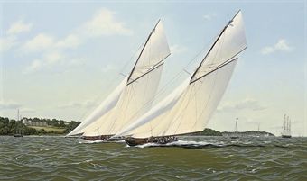 Britannia and Vigilant neck and neck off Norris Castle, Cowes