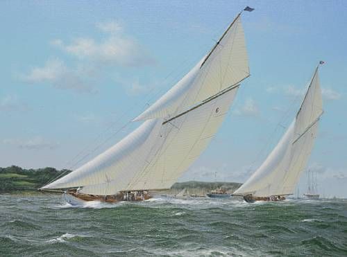 | Lulworth and Britannia racing off Cowes, with Lulworth in the lead as they approach the finishing line | |