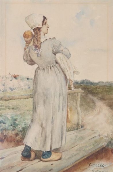MOTHER AND CHILD CROSSING A FOOTBRIDGE