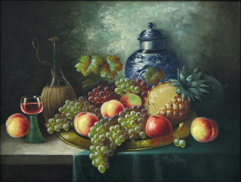 STILL LIFE WITH FRUIT AND WINE.