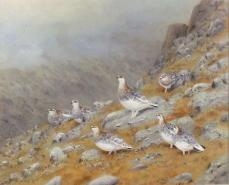 Ptarmigans on Scottish hillside