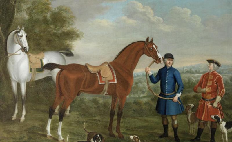 | A bay and a grey hunter, said to belong to Thomas Watson, 3rd Earl of Rockingham (1715-1746), in a landscape | |