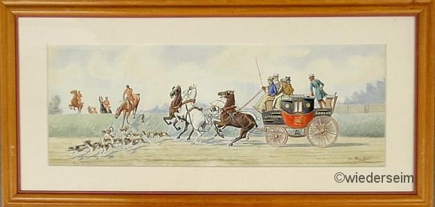 | a four-in-hand coach startled by an oncoming foxhunting field | |