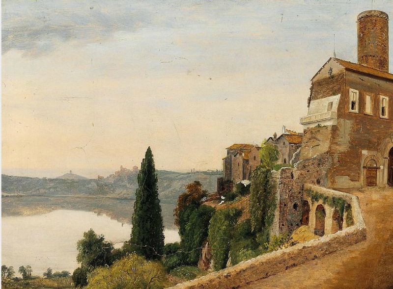 | Italian landscape with the village Nemi overlooking Lago di Nemi. | |