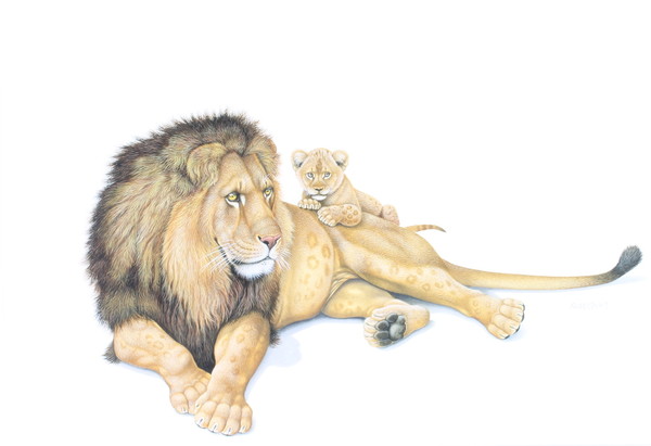 study of a lion and lion cub