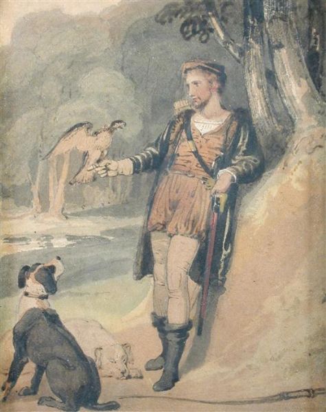 | The Lady in the Lake - A Man with a Falcon and a Dog; A Youth Reclining; and Children talking to an Old Lady | |