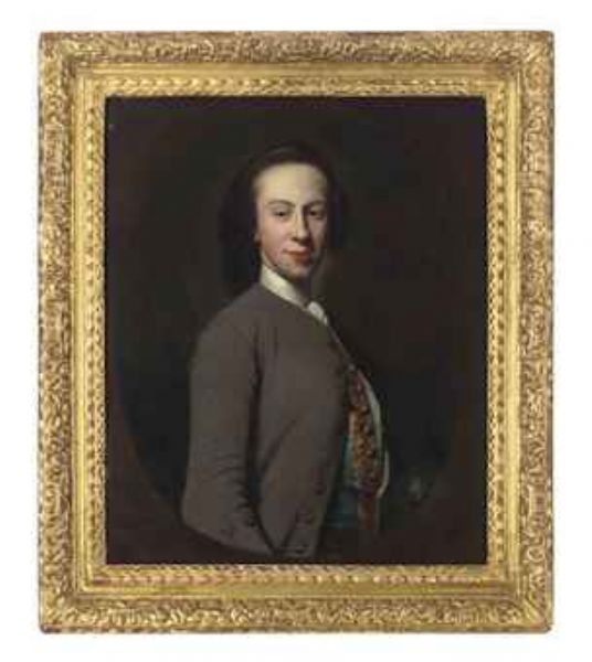 | Portrait of a gentleman, half-length, in a purple coat and a gold embroidered blue waistcoat, feigned oval | |