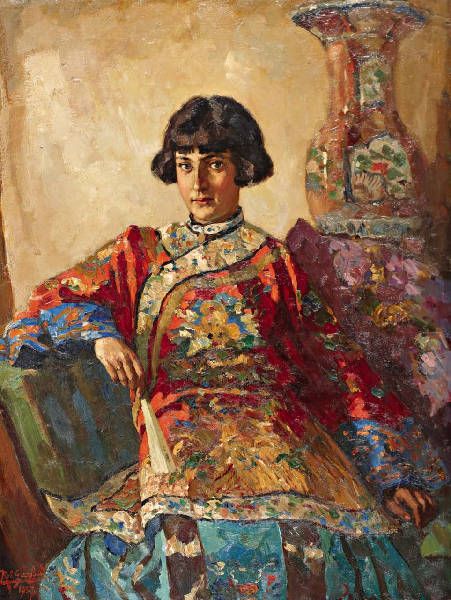 Portet van dame in Chinees zijden jasje