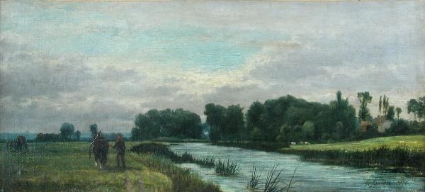 The River Cam with a Horseman and a Heavy Horse going along the Towpath