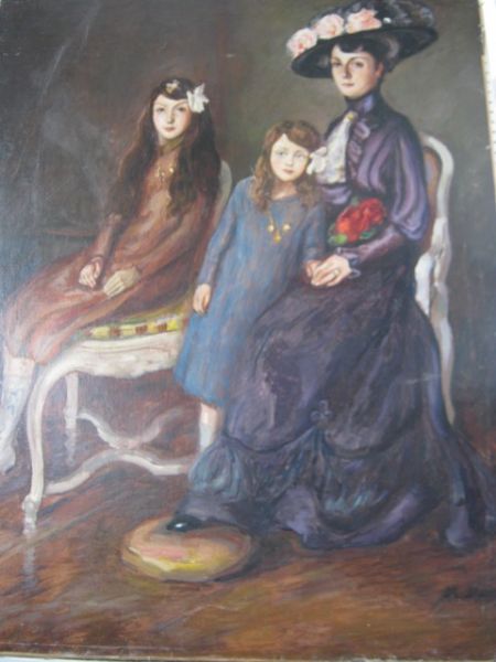 | Group portrait of a mother and her two daughters, full length in an interior | |