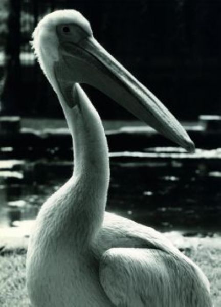 Brust'-Bild eines Pelikans im Gegenlicht