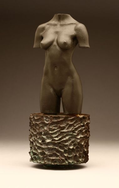 Bronze on metal base with black brown patina