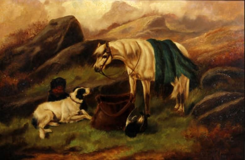 Hounds and horse with the days bag, and another similar, a pair