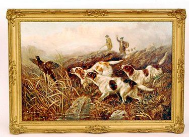 Hounds putting a pheasant to fight in the highlands