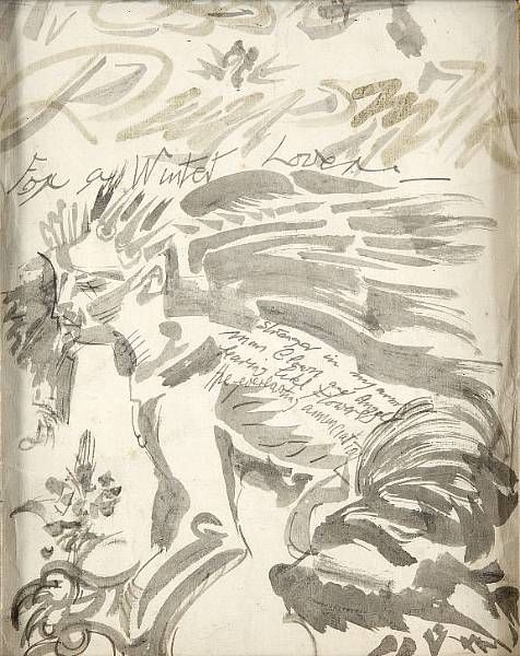 Ink and wash, inscribed with verse