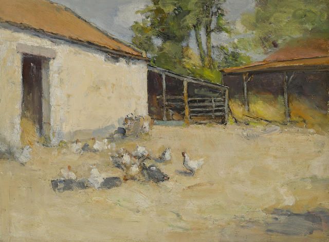 Hens outside a barn, Ceres, Scotland