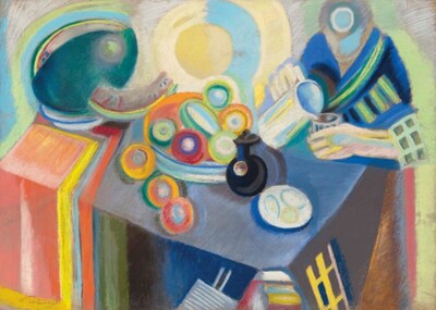 | Pastel over pencil on paper laid down along the edges on canvas | |
